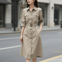 For a casual yet smart look, the shirt midi dress is a go-to choice. Featuring buttons and a collar, it combines sophistication with comfort. It works well for office wear, casual outings, or even travel, offering a relaxed but polished appearance.