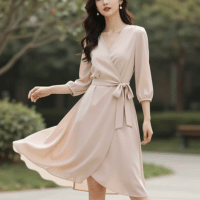 The wrap midi dress offers an effortlessly elegant style. With its adjustable tie at the waist, it allows for a customizable fit, flattering a variety of body shapes. Its timeless design works beautifully for both daytime events and evening occasions.