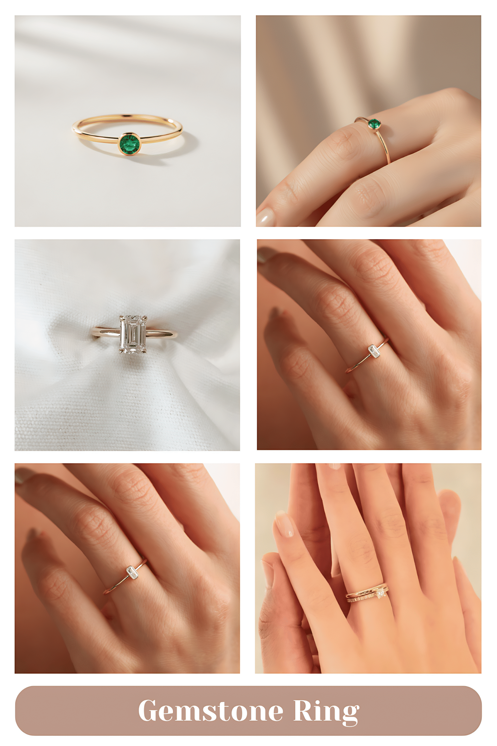 Dainty gemstone rings add delicate sparkle while staying understated. Tiny stones such as diamonds, emeralds, or birthstones catch the light enough to create interest without overwhelming your look. They’re versatile enough to wear alone or alongside other rings.