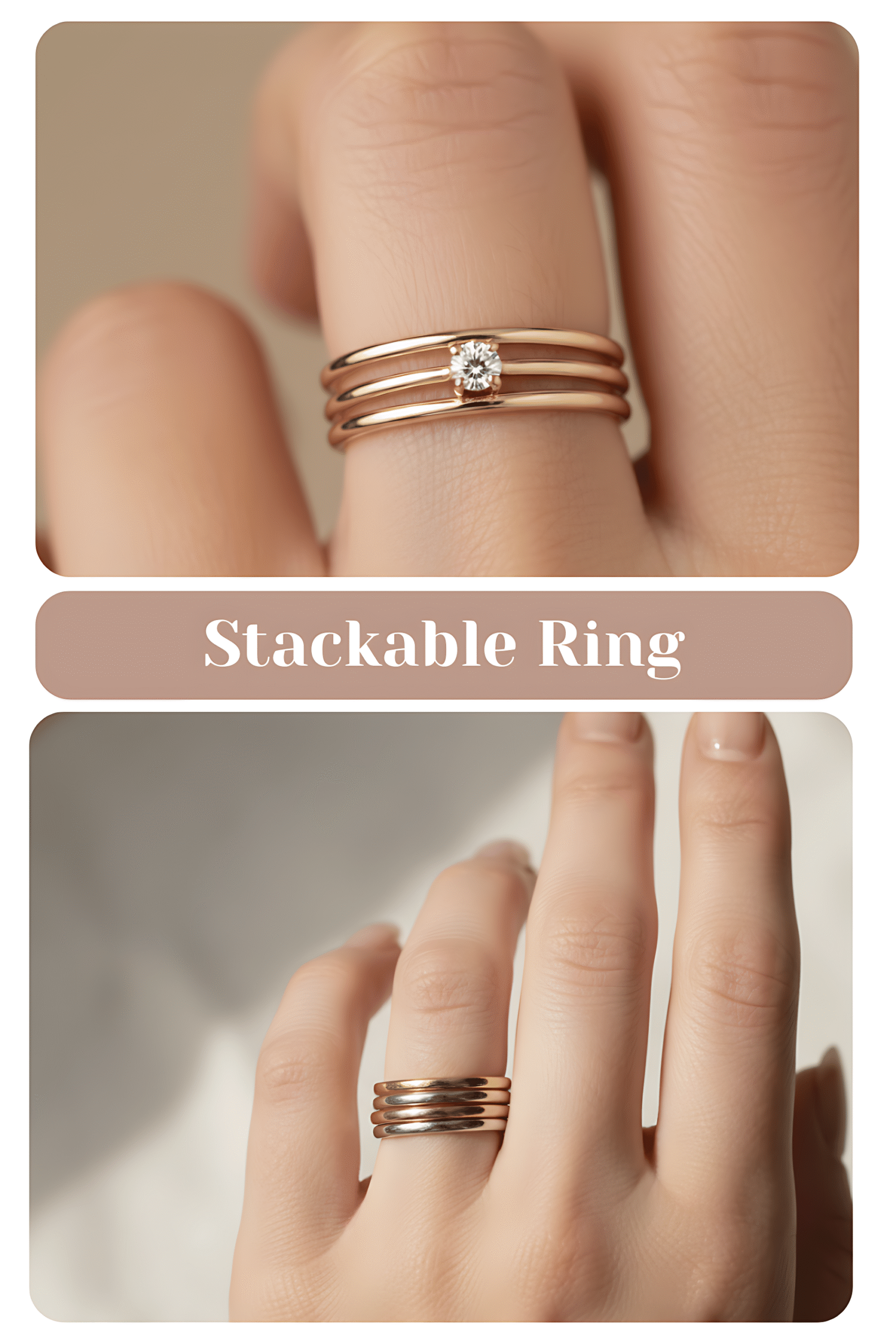 Stackable rings are ideal if you love to experiment. Thin bands can be mixed and matched, letting you change the combination to suit your mood or outfit. Blending metals such as gold, silver, and rose gold creates a unique look every time.