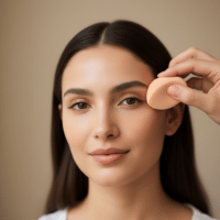 Next, dab a small amount of concealer under the eyes or on tiny blemishes. Blending just a touch keeps everything seamless and natural.
