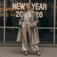 Tall women can easily carry bold, structured outfits that make a statement. Tailored jumpsuits, metallic fabrics, and wide-leg designs enhance long proportions while adding a modern edge. At the same time, layering with a long coat helps balance the overall silhouette. With confident styling and strong footwear choices, tall women can create a striking New Year’s Eve look that feels powerful and polished.