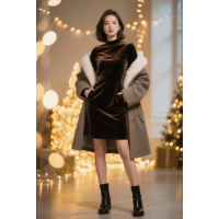 For petite women, outfits with shorter lengths and fitted silhouettes work especially well. Mini dresses in soft fabrics like velvet create a cozy yet polished winter look without overwhelming a smaller frame. Additionally, clean cuts and minimal layering help maintain balance, while ankle boots or heels subtly add height. Keeping the outfit simple yet stylish ensures an elegant appearance that feels effortless and festive.